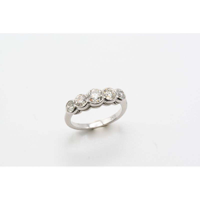 A DIAMOND FIVE STONE RING the five graduated circular-cut diamonds weigh approximately 1.50 carats in total and are set in platinum. Size M 1/2.