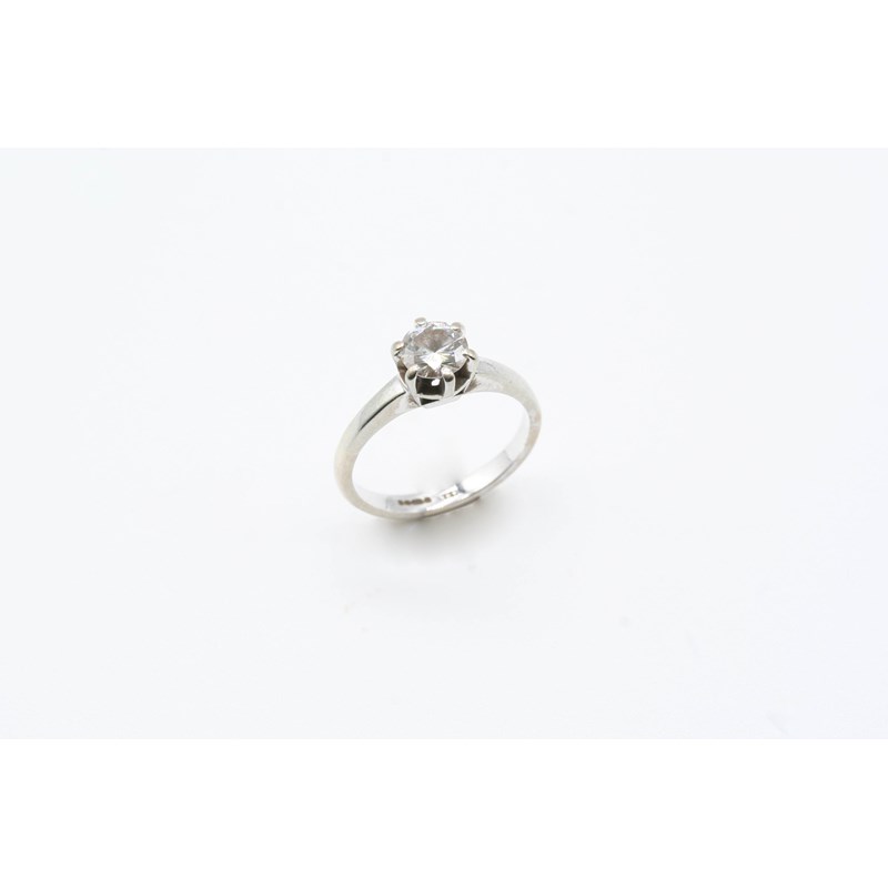 A DIAMOND SOLITAIRE RING the brilliant-cut diamond weighs approximately 0.58 carats and is set in 18ct. white gold. Size I 1/2.