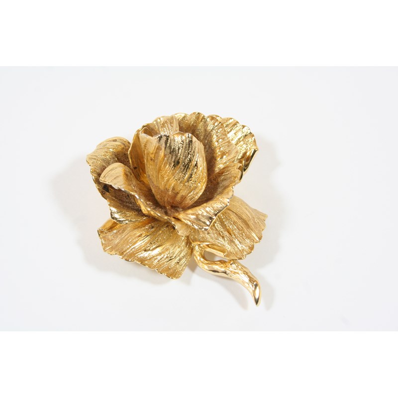 A GOLD PLATED ROSE BROOCH BY CHRISTIAN DIOR realistically formed, signed to the reverse Chr. Dior, Germany, 6.3cm. high.
