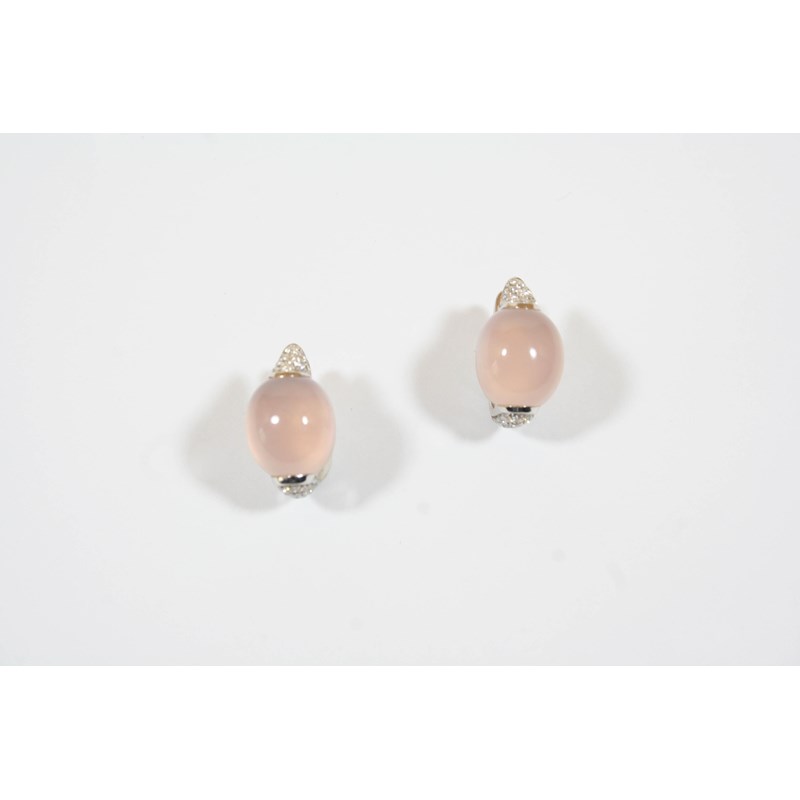A PAIR OF ROSE QUARTZ AND DIAMOND EARRINGS BY ROBERTO COIN