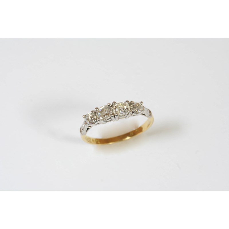 the four cushion-shaped diamonds weigh approximately 1.00 carats in total and are set in 18ct. gold and platinum. Size P 1/2.