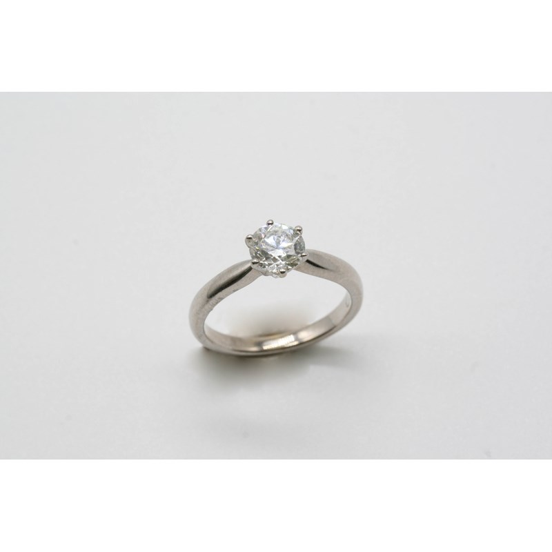 A DIAMOND SOLITAIRE RING the round brilliant-cut diamond weighs approximately 1.00 carats and is set in 18ct. white gold. Size N.
