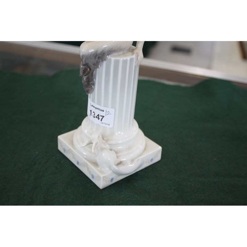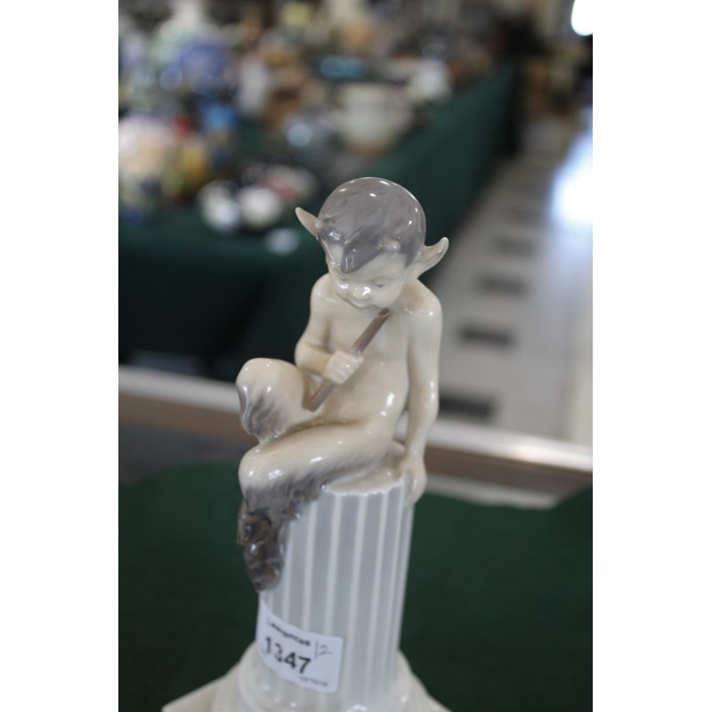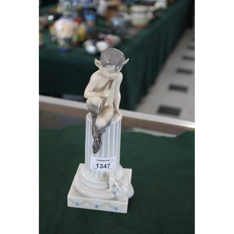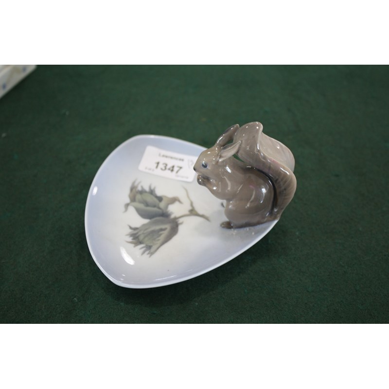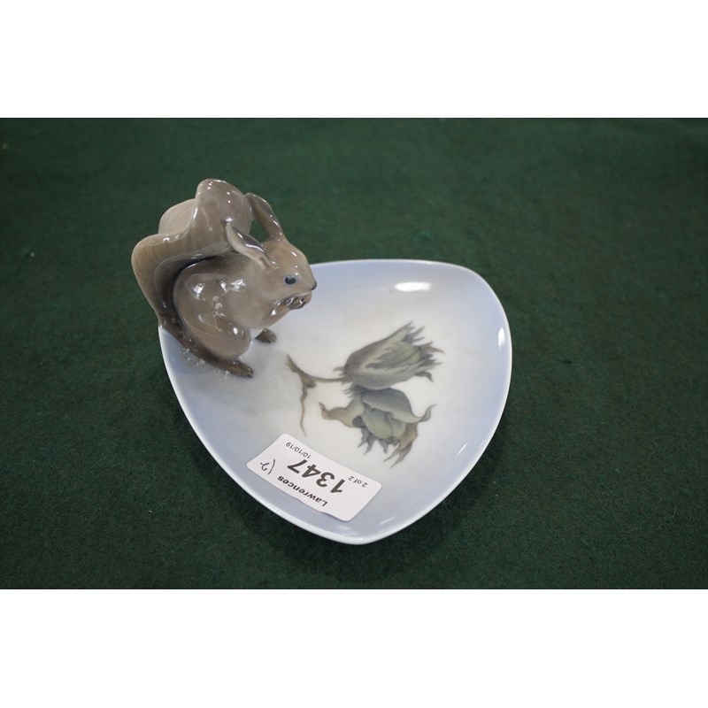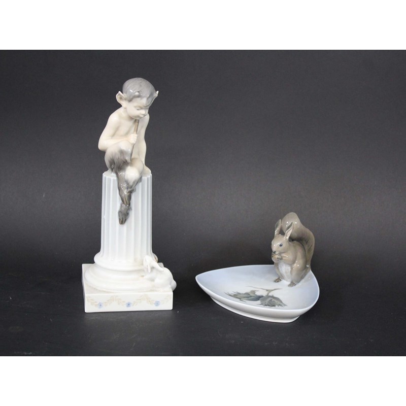 Model No 456 'Faun on column with Squirrel. Also with a Royal Copenhagen squirrel dish, Model No 981. Figure marked, Royal Copenhagen, Denmark, 456. 8 1/2ins (21.5cms) high. (2)