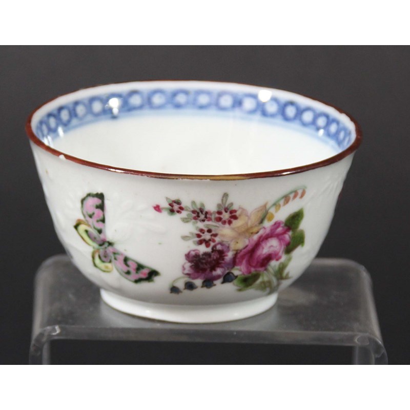 CHINESE TEA BOWL, Qianlong, painted with floral sprays and butterflies on a bianco sopra bianco ground from the James Giles atelier, diameter 7.2cm