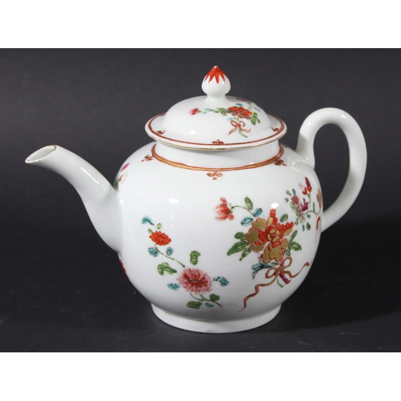 WORCESTER TEAPOT AND COVER, circa 1760, with Companagnie des Indes style enamelled and gilt decoration, length 18cm