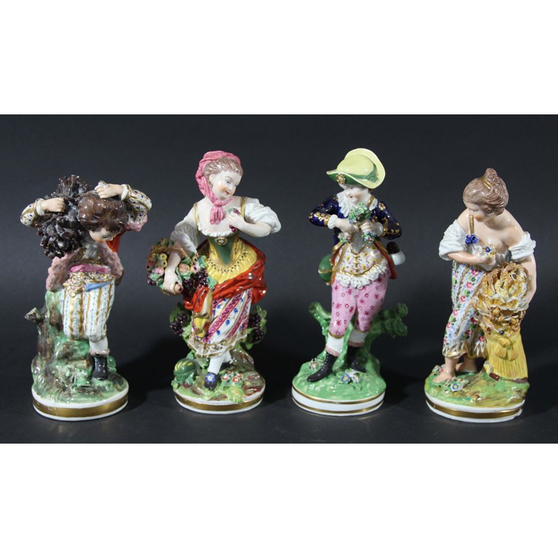 SET OF FOUR DERBY FIGURES EMBLEMATIC OF THE SEASONS, late 18th or early 19th century, on circular bases, incised marks, height 17cm approx (4)