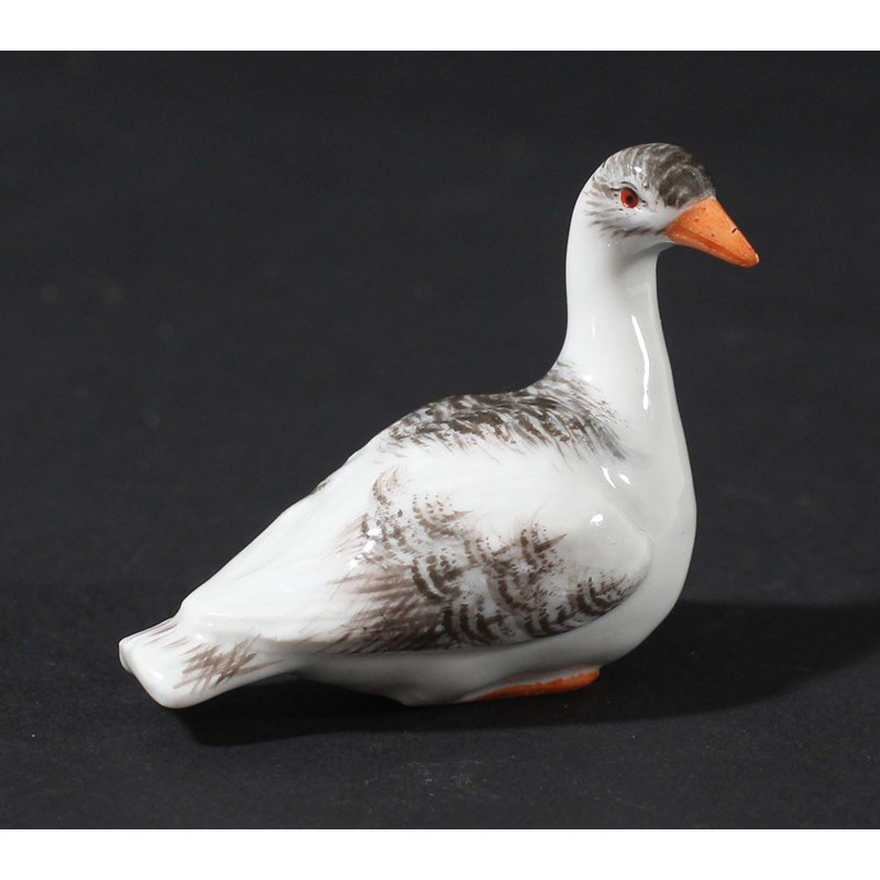 MEISSEN FIGURE OF A GOOSE, 20th century, with grey plumage, blue crossed sword mark, height 4cm