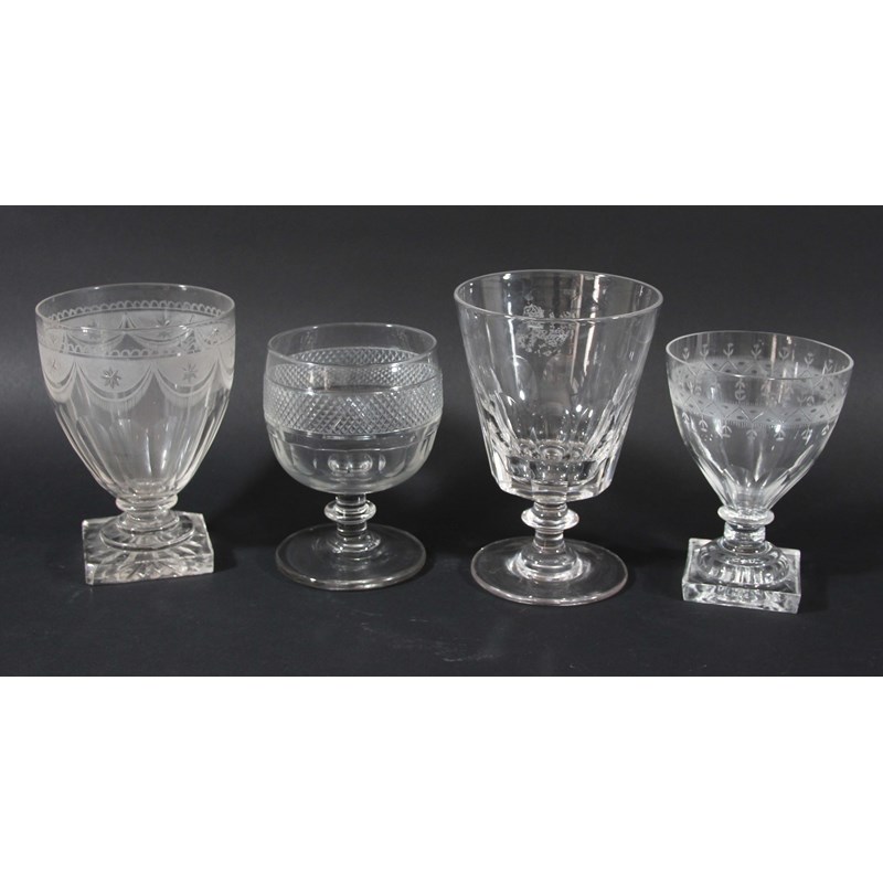GROUP OF FOUR RUMMERS OR GOBLETS, late 18th century and later, including one with a lemon squeezer base, 16cm and smaller (4)