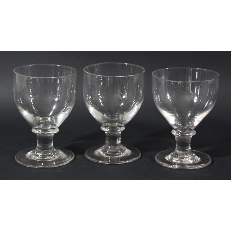 COLLECTION OF TWELVE GLASS RUMMERS, mainly 19th century, with rounded bowls and knopped stems (12)