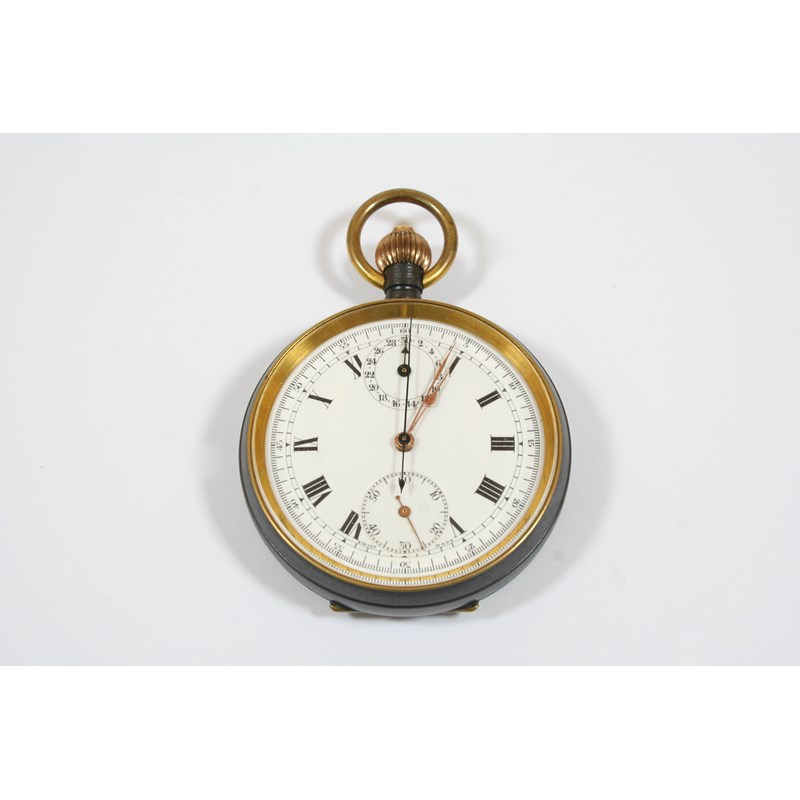 A GUN METAL OPEN FACED CHRONOGRAPH STOP WATCH