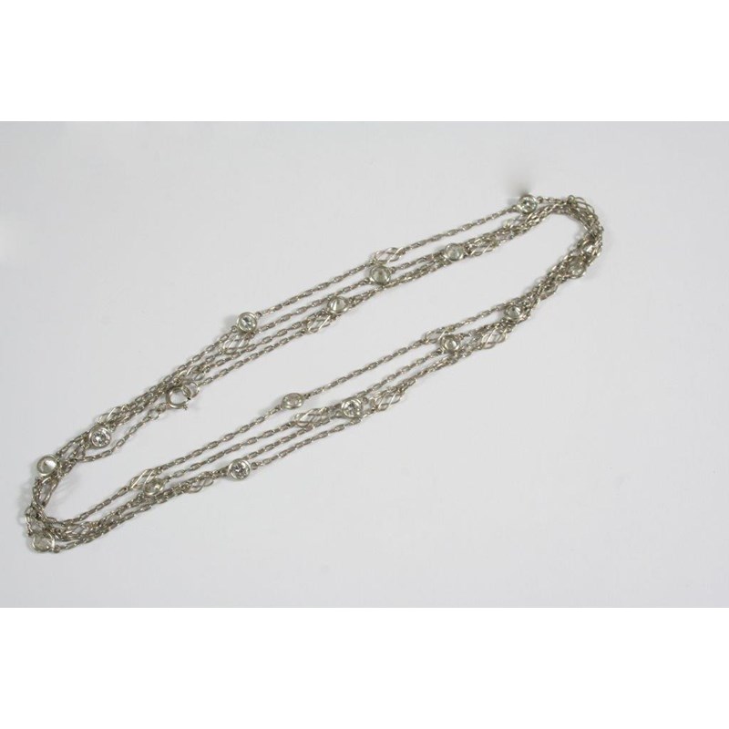 A PLATINUM AND DIAMOND CHAIN NECKLACE the fine fancy link platinum chain is set with circular-cut diamonds in collet mounts, 104cm. long.
