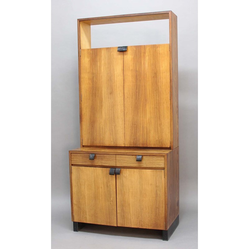 the top section with 2 cupboard doors with leather tab handles and internal shelves. The bottom section with 2 drawers and cupboard doors, with further leather tab handles and an internal shelf to the cupboard. 78ins (198cms) high
