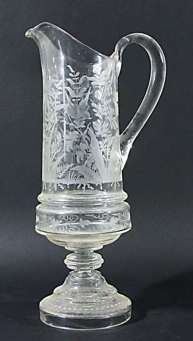 late 19th century, of tapering form on a knopped stem and stepped foot, engraved with bitds amongst flowering foliage, height 37cm