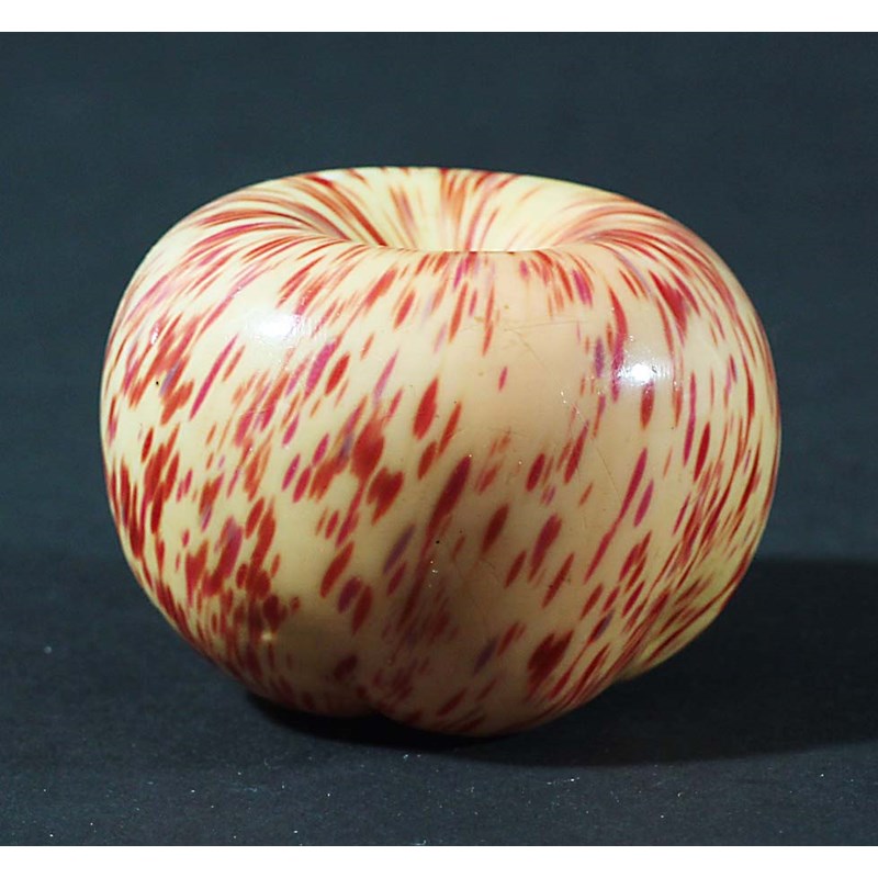 ST LOUIS APPLE PAPERWEIGHT, 20th century, cream with red markings, diameter 6cm