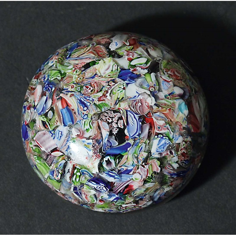 BACARRAT SCRAMBLED PAPERWEIGHT, with various canes and latticino, diameter 6cm