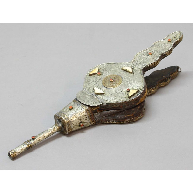 SET OF MIDDLE EASTERN OR ARABIC BELLOWS, with white metal, coral and bone mounts, length 44cm