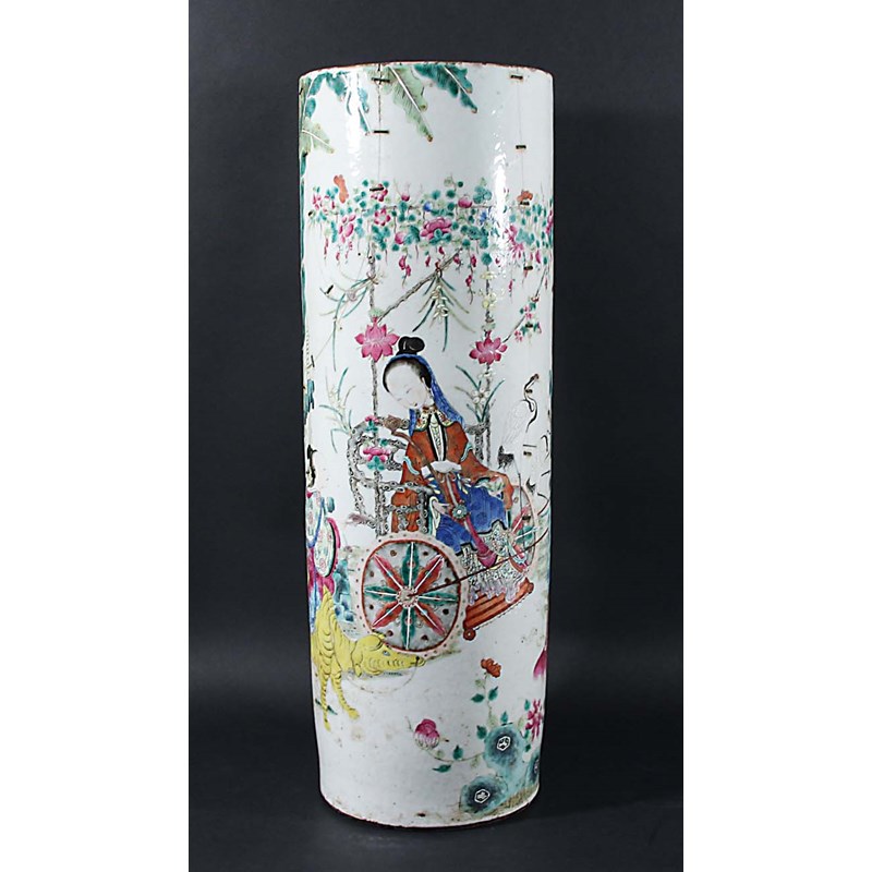 CHINESE FAMILLE ROSE SCROLL HOLDER OR STICK STAND,