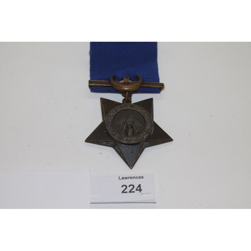 A KHEDIVES STAR. An unnamed Khedives Star with 1882 date, complete with mount and crescent/star.