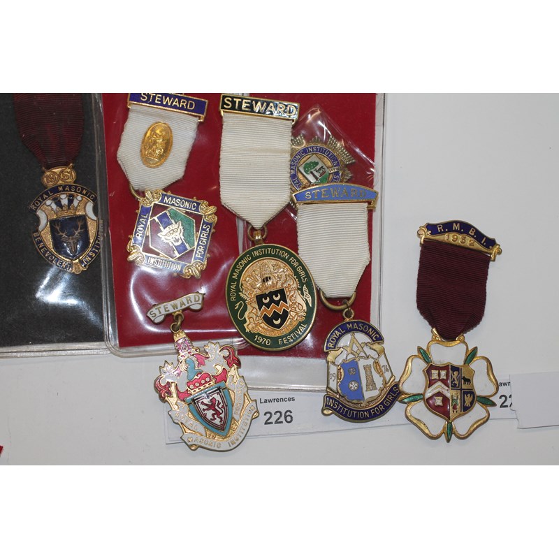 (20) Mostly base metal and enamel Masonic awards including those with Steward bar, etc. Masonic Institutes for Boys and Girls, also Benevolent Institutes of the 1950's in the main.