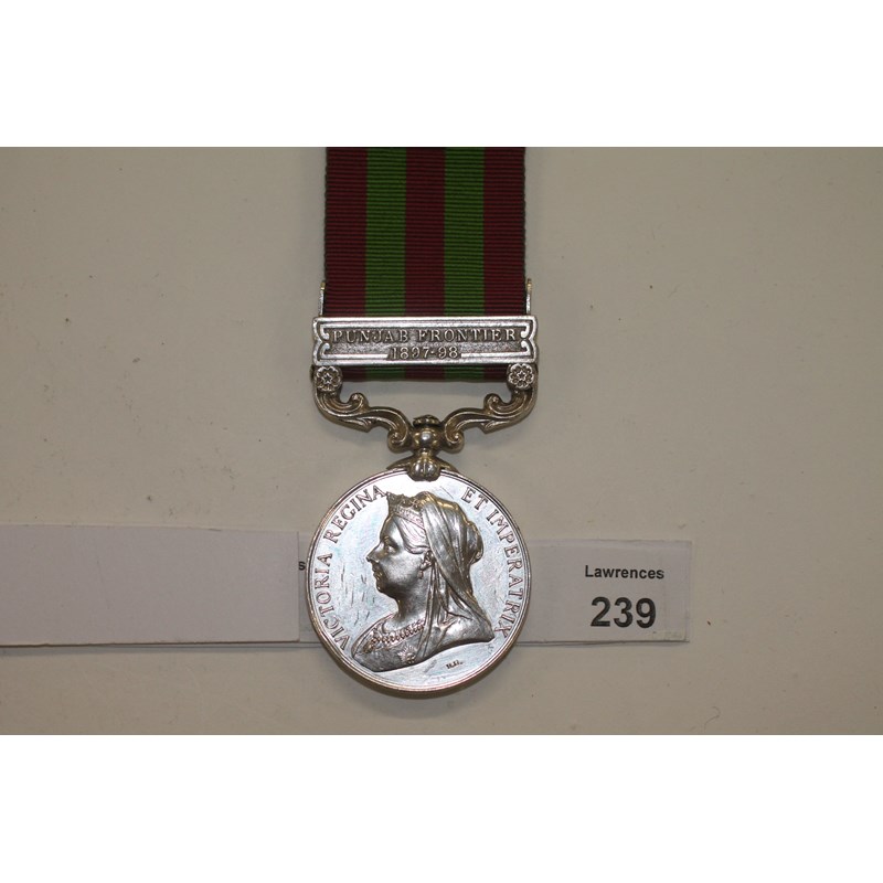 An 1895 India General Service Medal named to 3071 Pte G Dyzon 1st Battn Som L I. Bar Punjab Frontier 1897-98.
