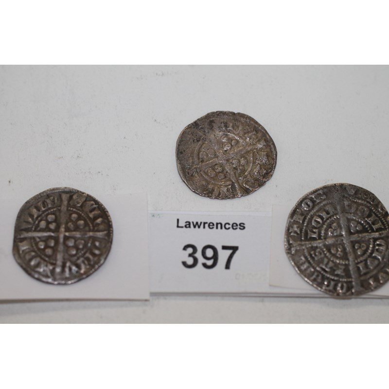 PENNIES & A HALF GROAT. Pennies of Edward 11 both London and Bury St Edmunds Mints. A Half Groat of Edward 111 London Mint (3)
