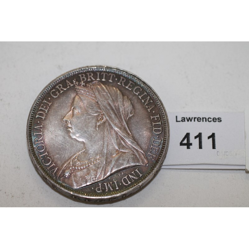 A VICTORIAN CROWN PIECE. An 1893 dated Crown or Five Shilling piece, with LV1 in the edge lettering.