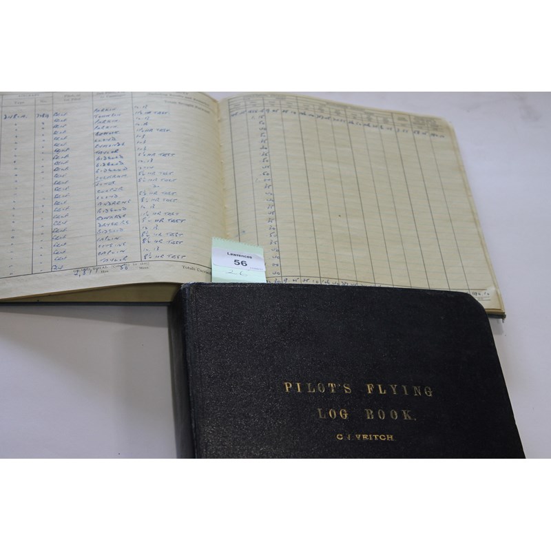 The Logbooks of C J Veitch who flew from 1941 -1946 in the RAF, starting in a Tiger Moth at No 27 E F T S Induna South Rhodesia in December 1941. Keeping an extremely concise record of service, with photographs and certificates pasted throughout the years. Posted to a Training Sqdn on Oxfords. Completing Flying Training he was posted to RAF Grantham, then onto Finningley Yorks. As a posting to Flying Instructors School in late 1942, he began flying Miles Magisters. It was here the ATA 'Playboy' pilot Jim A Mollison (Amy Johnson's husband) signed a slip for him, now pasted in the book.  By now flying DH82A's , he was training Pilots who regarded him highly. Various letters from former pupils and photographs are pasted in, received from them. His Record of Service shows postings in the UK and S Africa, HMT Moultan etc. In 1943 he started flying Stirlings then Lancasters  In September 1943 he was a Flt Sgt 1219046 as an Elementary Flying Instructor Category B. In 1944 April he commenced Operational Training, on Oxfords but now as a 2nd Pilot. In July 1944 at No 12 Operational Training Unit he began flying Wellingtons