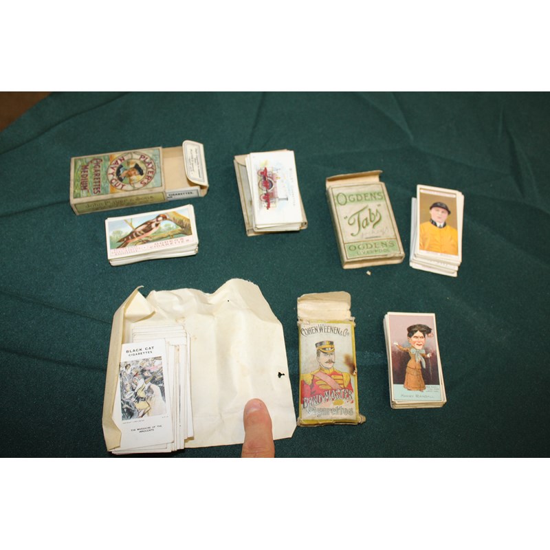 in albums and in packets, including John Player Cricketers Caricatures, John Players Football Caricatures, Ogdens Cricket 1926, Wills Wonders of the Past, Louis Gerard Modern Armaments, Players Army Life, Gallaher Boy Scout Series, Players Military Regiments, Fry's Scout Series, Smiths 'Pinewood' Footballers (2), Players Wrestling & Ju Jitsu, Cohen Weenen Star Artistes (approx 34 and with packet), Ogden's Racing Colours, Black Cat Raemaekers War Cartoons, and many more.