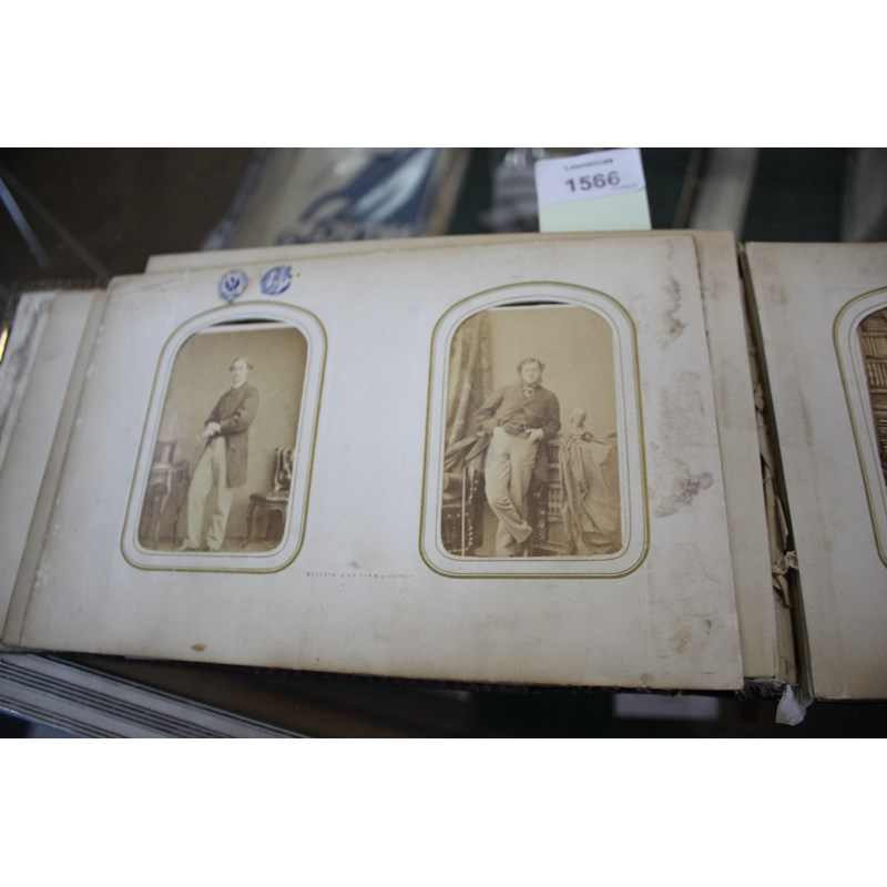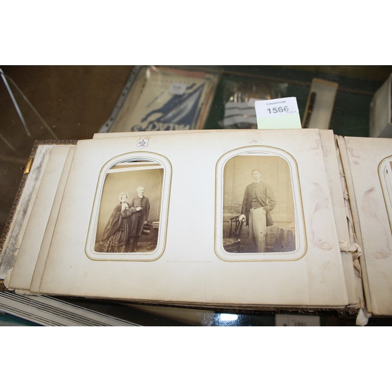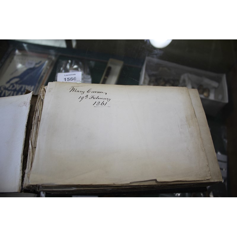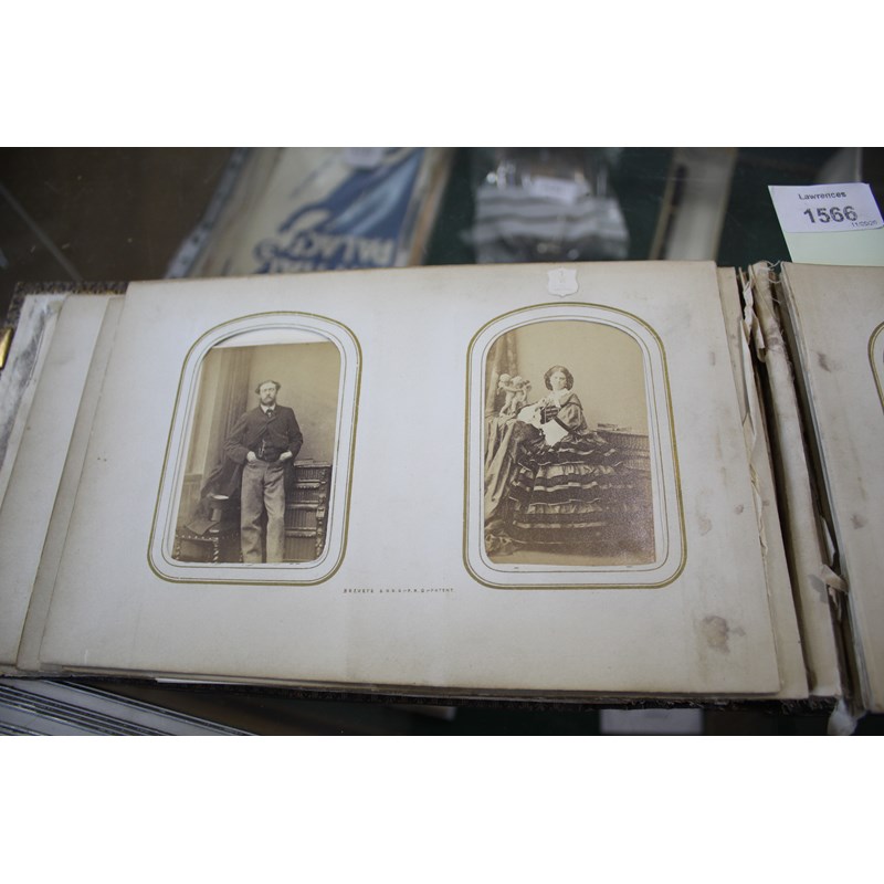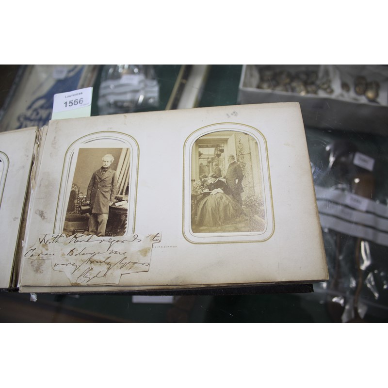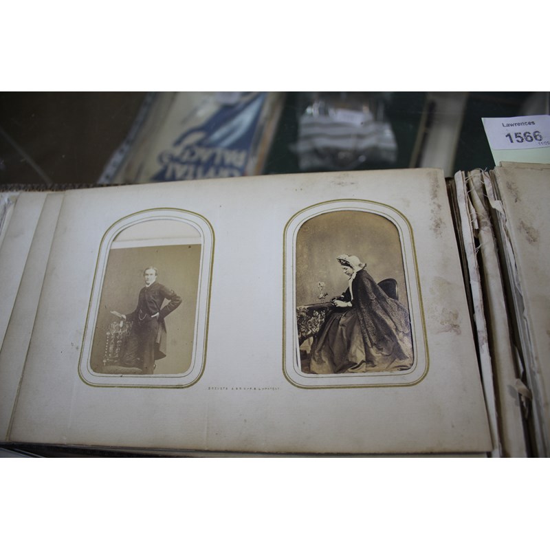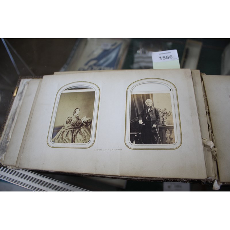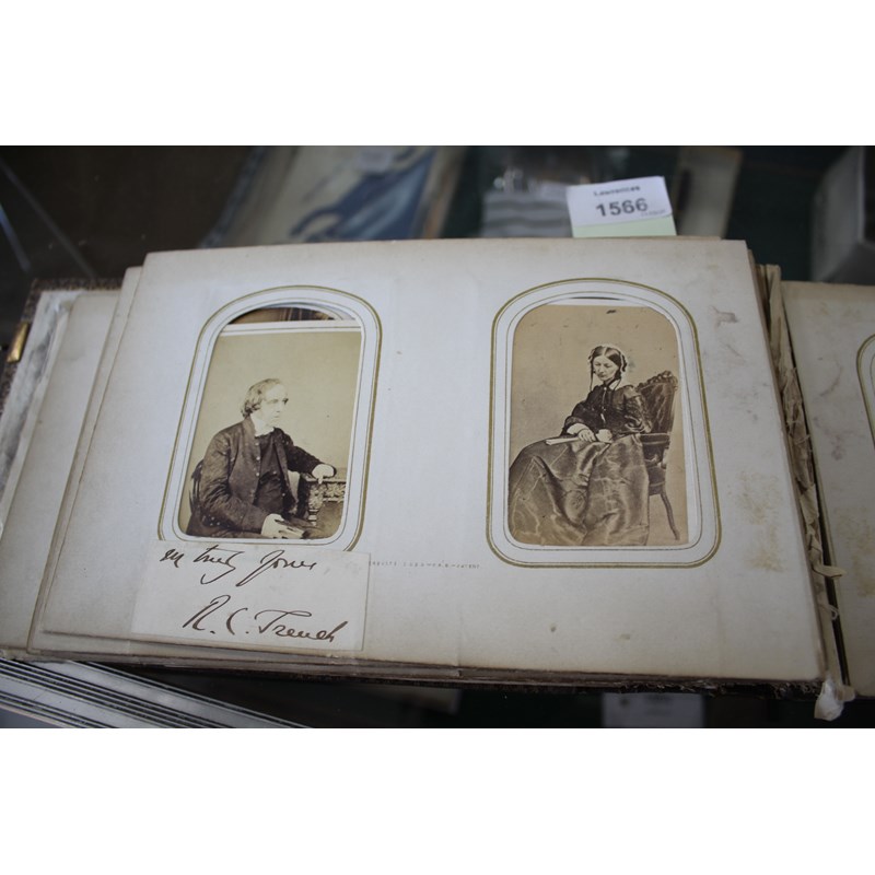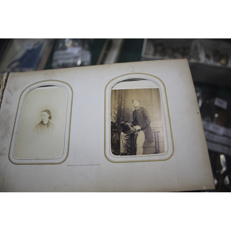 an album dated 1861, with various studio photographs including Queen Victoria & Prince Consort (Mayall), Prince of Wales, Princess Louisa, Prince Louis of Hesse, Princess Helena, Viscountess Palmerston (signed underneath), and a large number of other photographs of figures from Victorian high society (some with signatures underneath). Album falling apart.