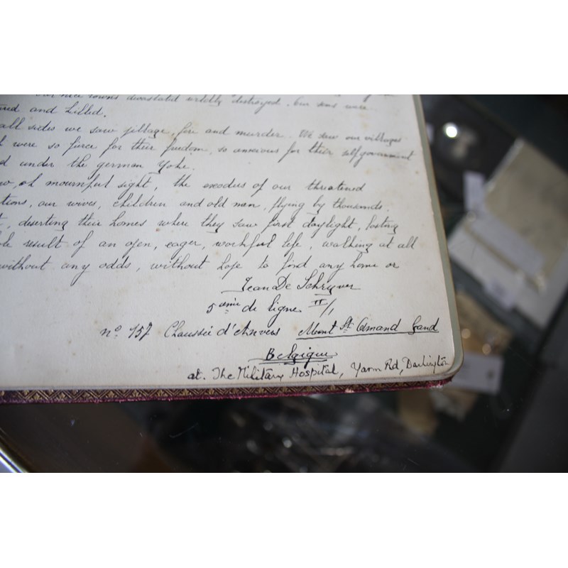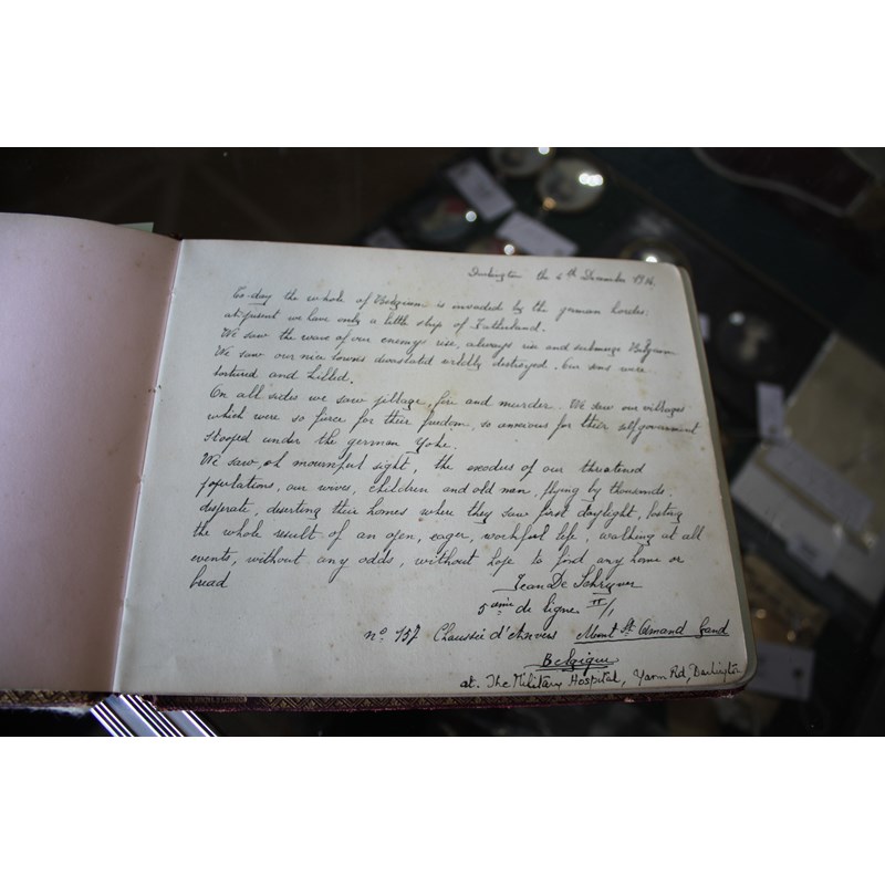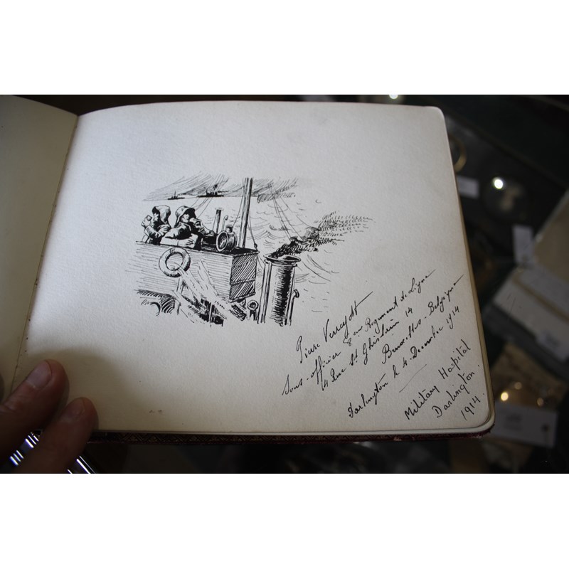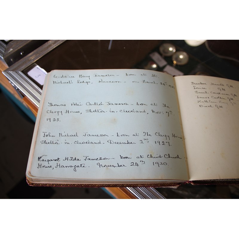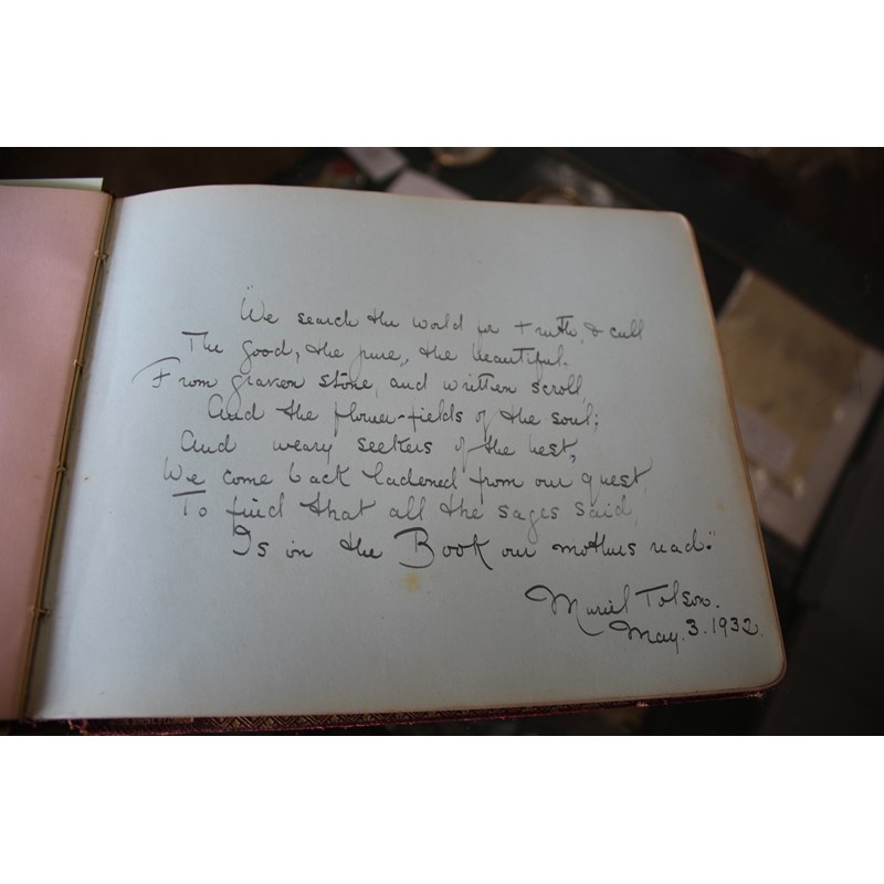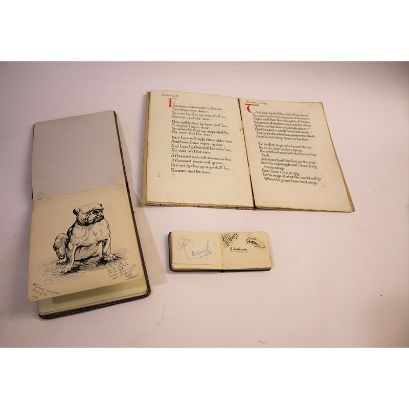 a small album from the 1930' and 1940's with signatures including Len Hutton, F R Brown, Gubby Allen, Maurice Leyland, signatures from Wimbledon 1949 (various), Gordon Holdom (Actor), Freya Stark (explorer and writer), Capt John Noel (explorer), Rose Quong (writer), Jean Batten (aviator), Count Byron de Prorok (author, and others). Also with an album including some pen and ink drawings and information from Darlington Military Hospital, and a privately produced book A Selection of Short Poems by Lord Tennyson by M Jameson, 1941. (3)