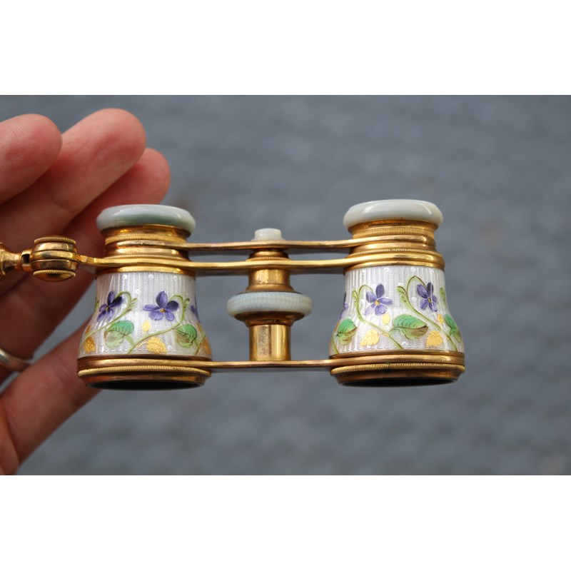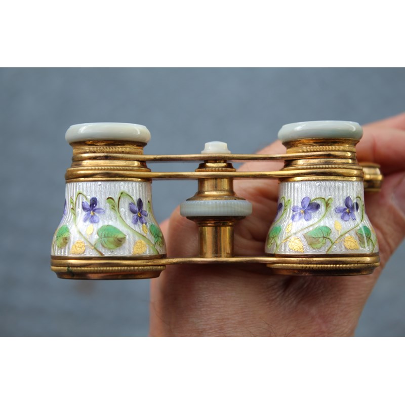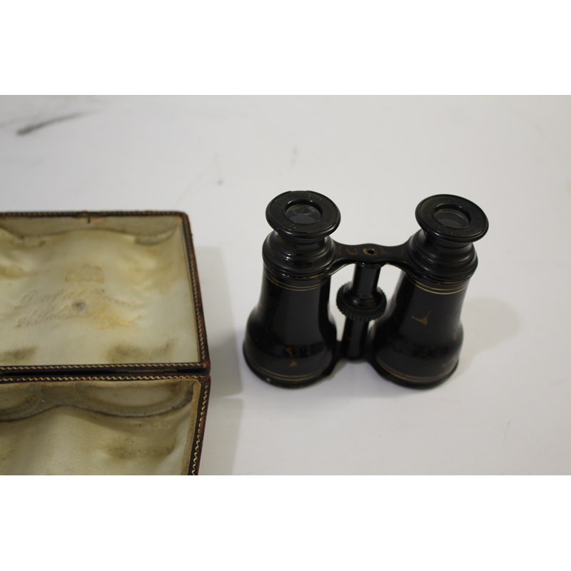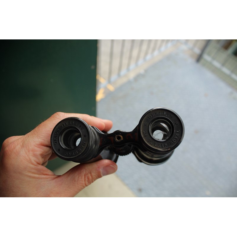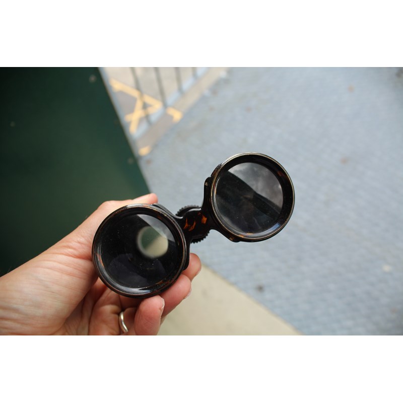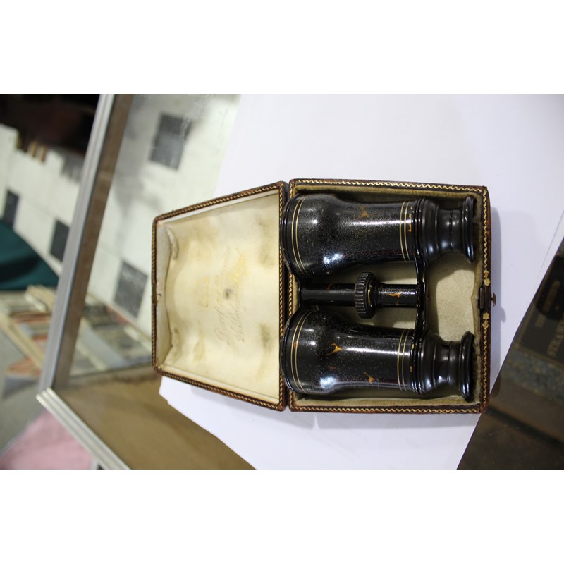 including a 19thc ivory and brass monocular, marked Soleil Optician Du Roi, Passage Feydeau No 21, in a pouch. Also with a wonderful quality pair of enamel, brass and mother of pearl opera glasses in original case (floral design), and a pair of tortoiseshell opera glasses in original leather fitted case, marked for Derepas, 24 Palais Royal, slide rule etc.