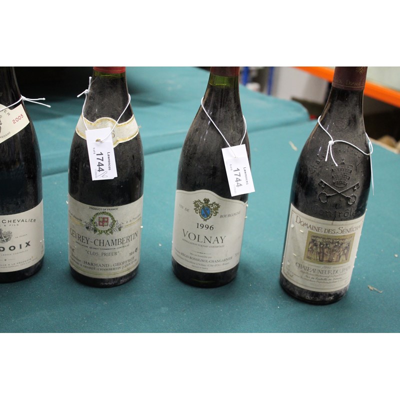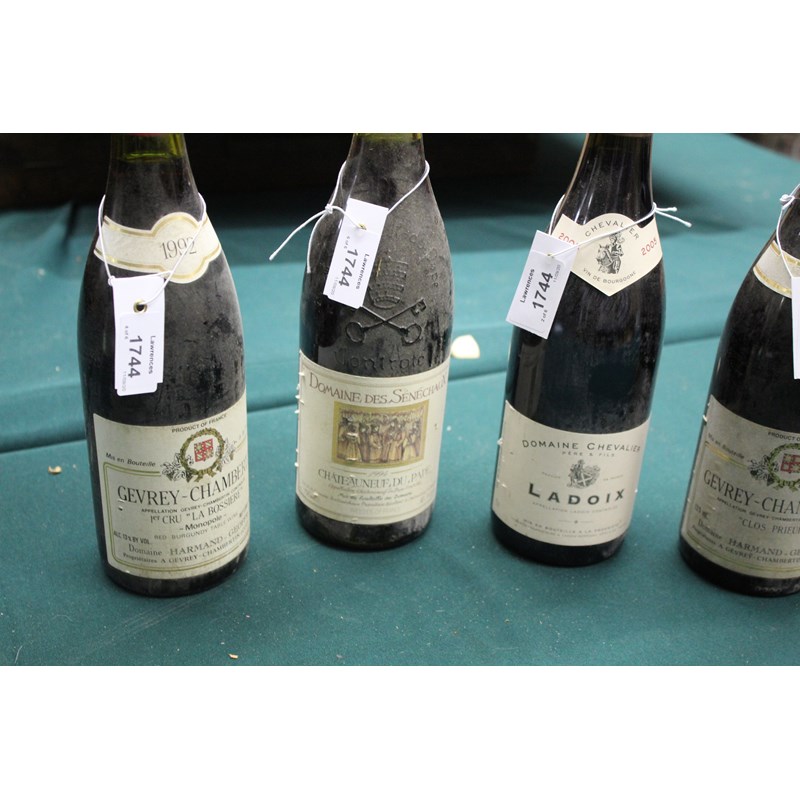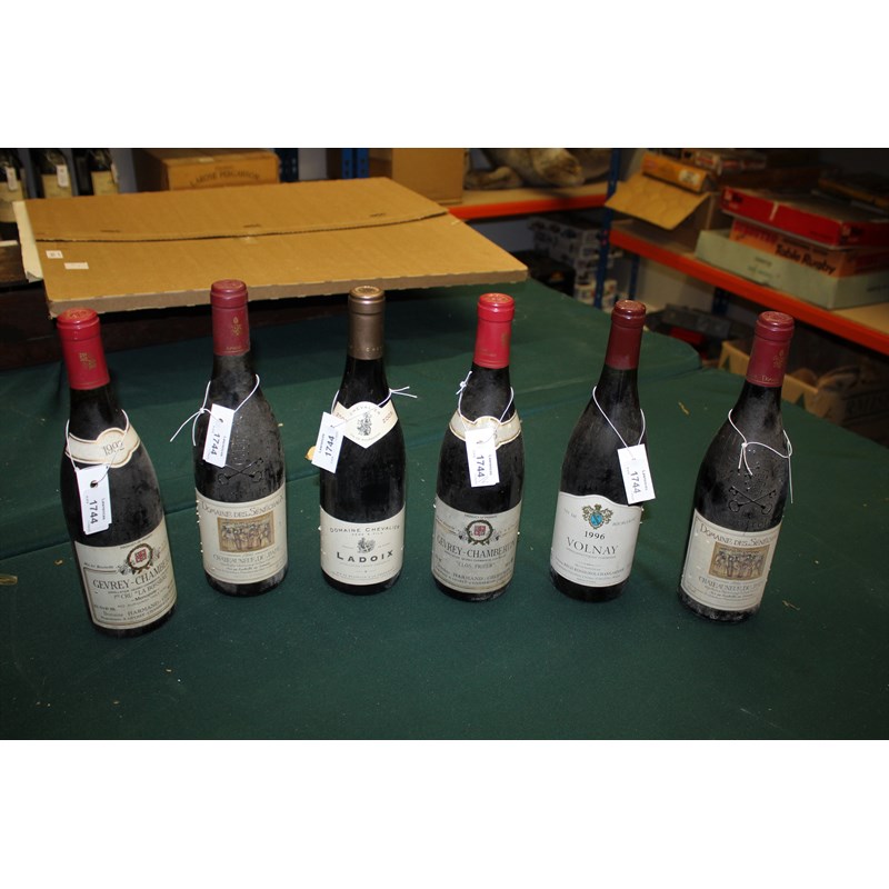 WINE including 2 bottles of Chateauneuf Du Pape 1994, Domaine Chevalier Ladoix 2005, 2 bottles of Gevrey-Chambertin 1992 and 1996, and Volnay 1996. (6)