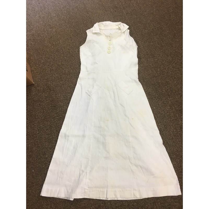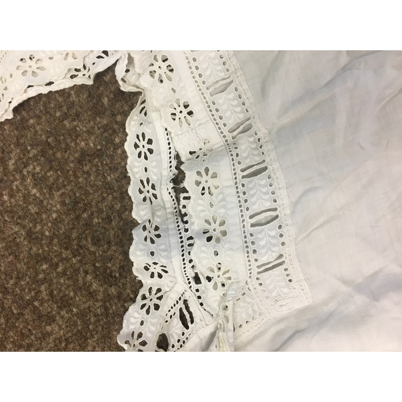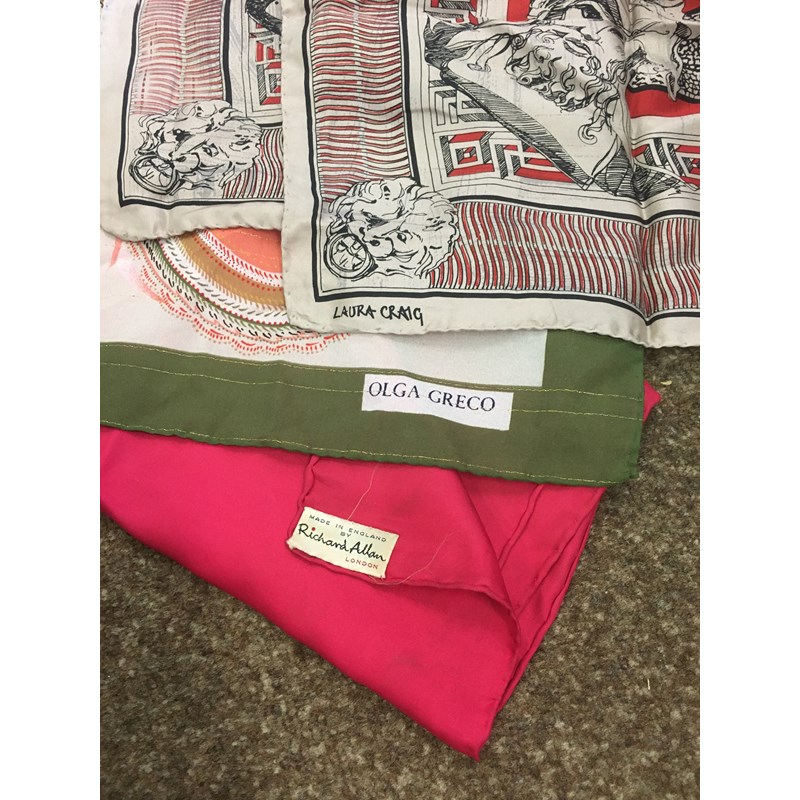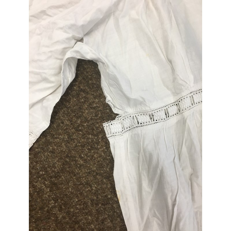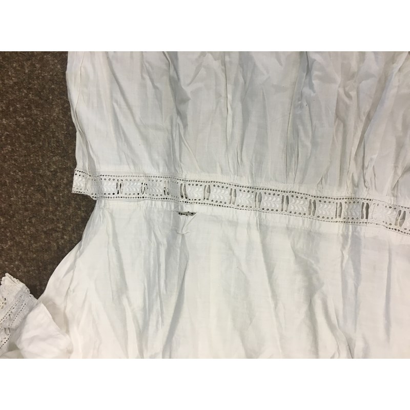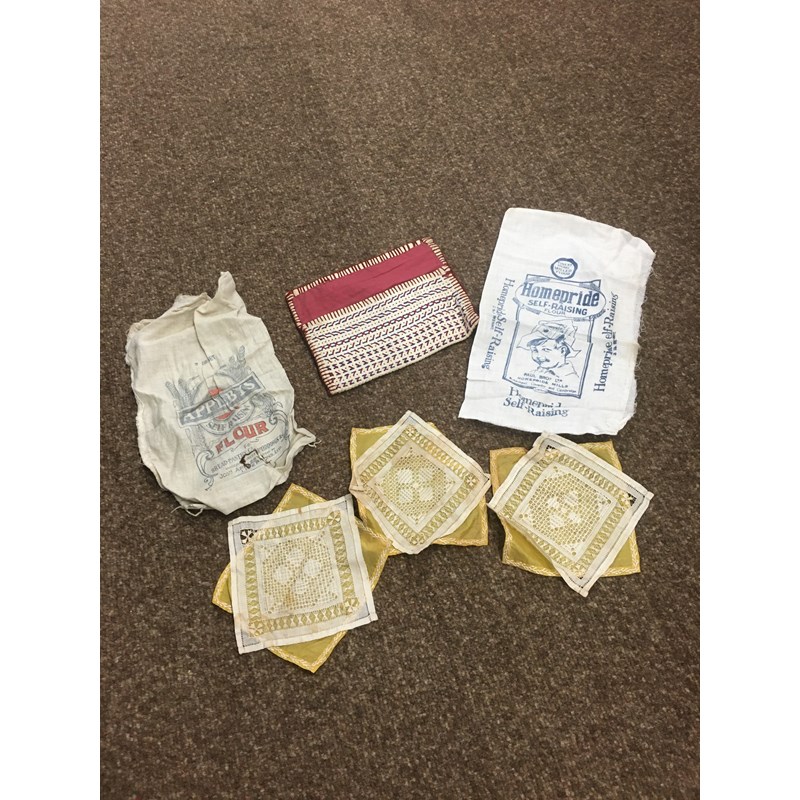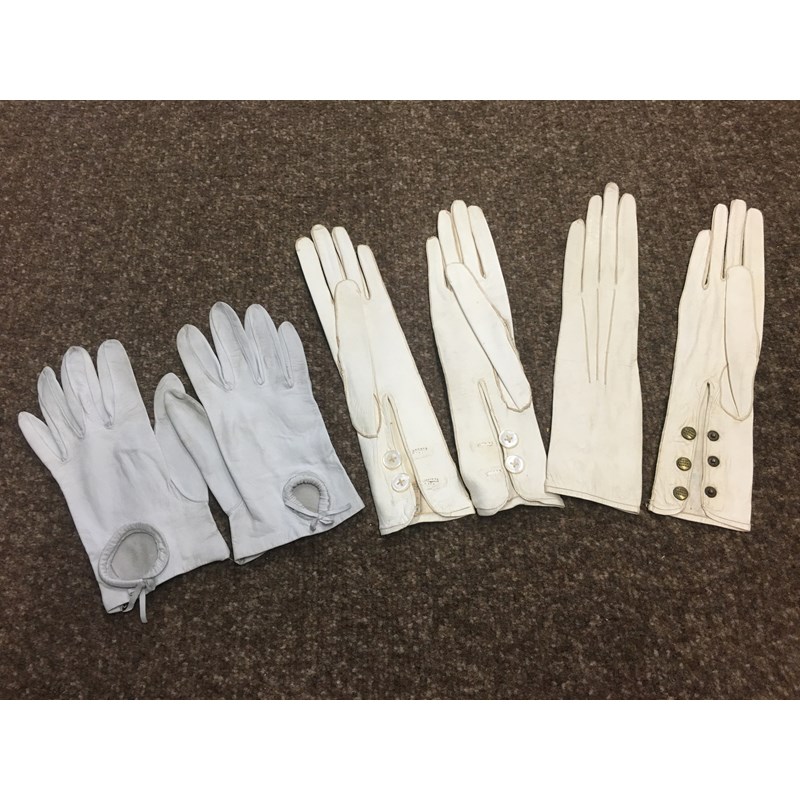 including a 1930's 'Ritchwear' white sleeveless tennis/sun dress, 2 cotton nightdresses, a collection of white embroidered table linens, hand painted silk mats edged with lace, a silk lined box containing gloves and glove stretchers, and a qty of vintage textiles and scarves.