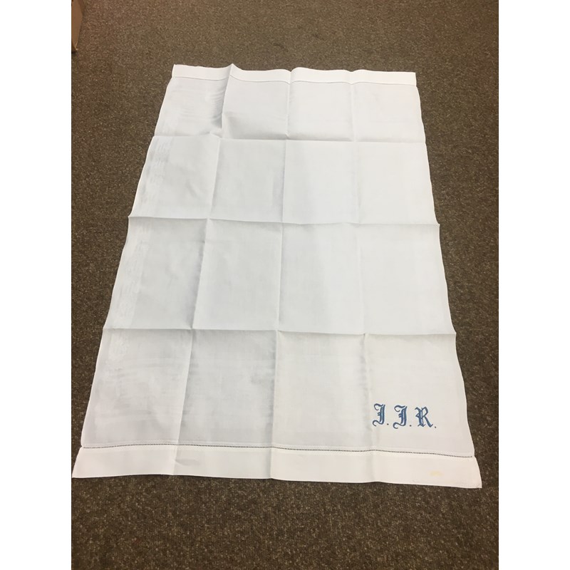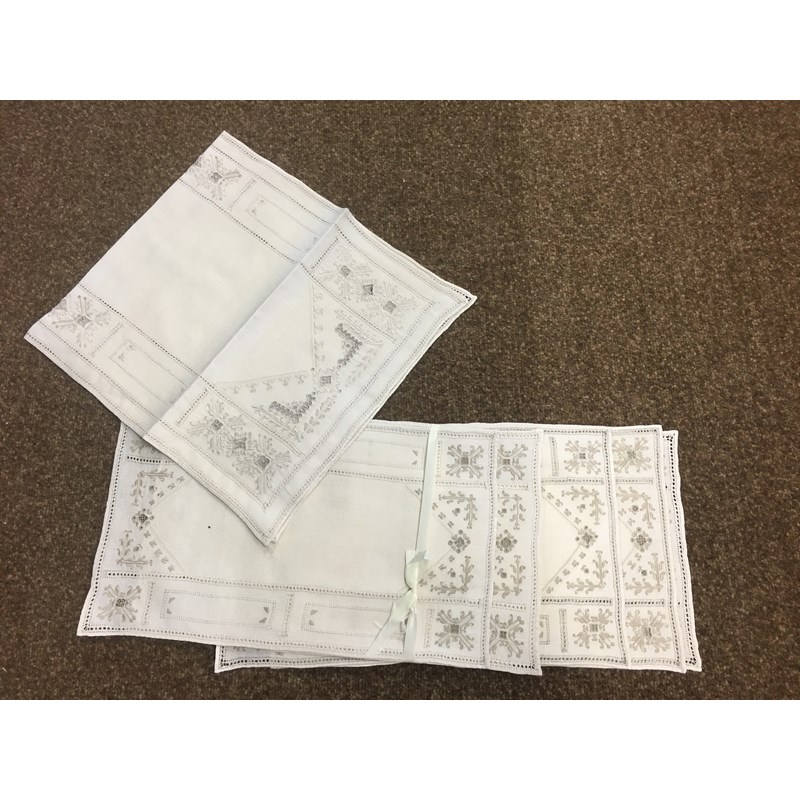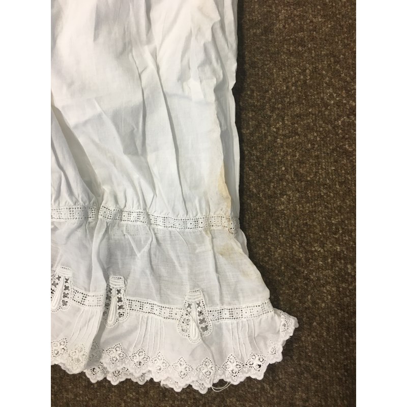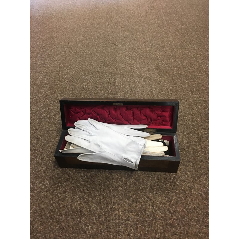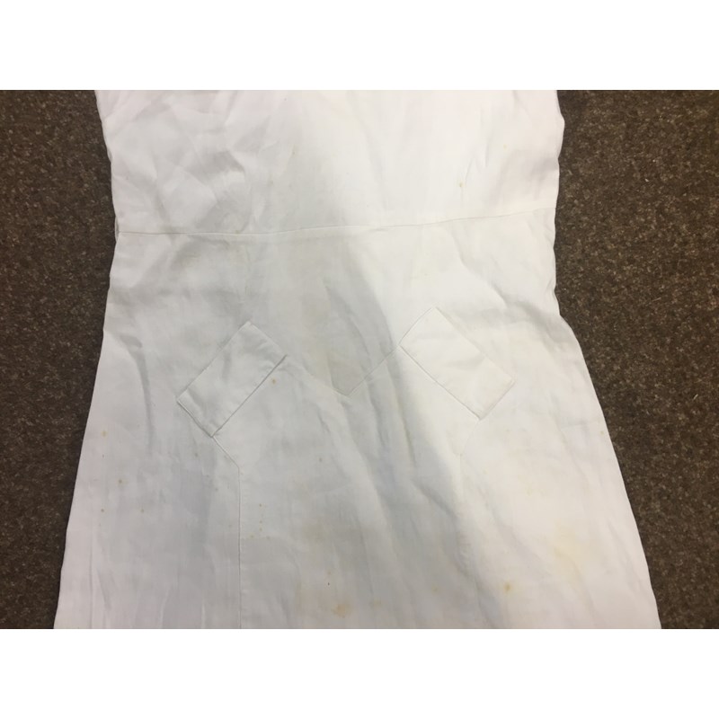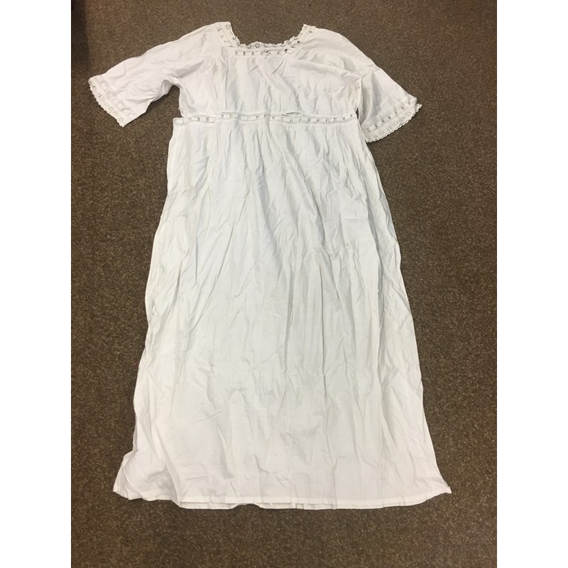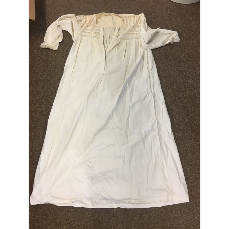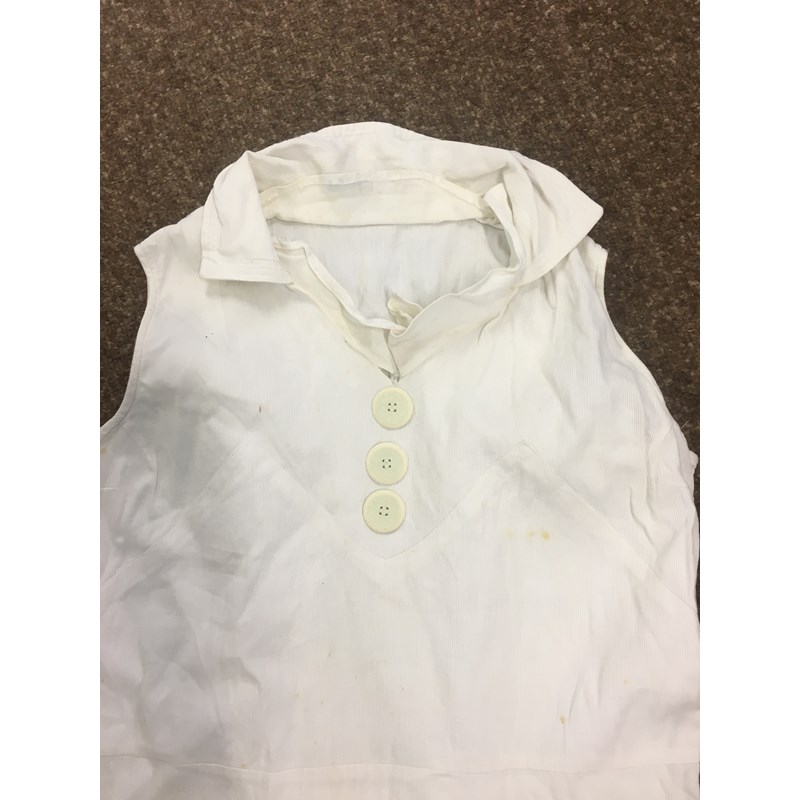 including a 1930's 'Ritchwear' white sleeveless tennis/sun dress, 2 cotton nightdresses, a collection of white embroidered table linens, hand painted silk mats edged with lace, a silk lined box containing gloves and glove stretchers, and a qty of vintage textiles and scarves.