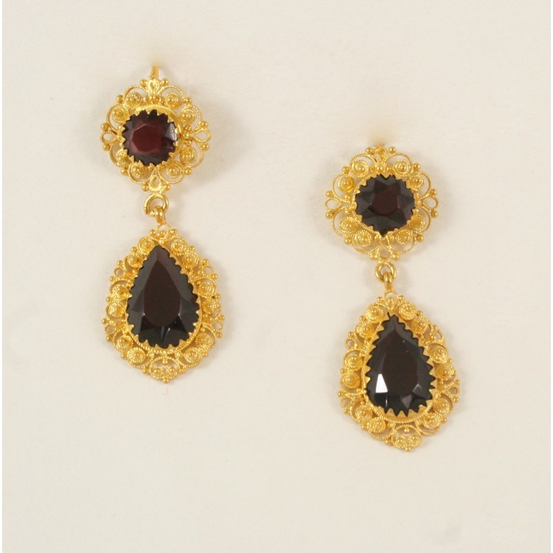 A PAIR OF GARNET AND GOLD DROP EARRINGS