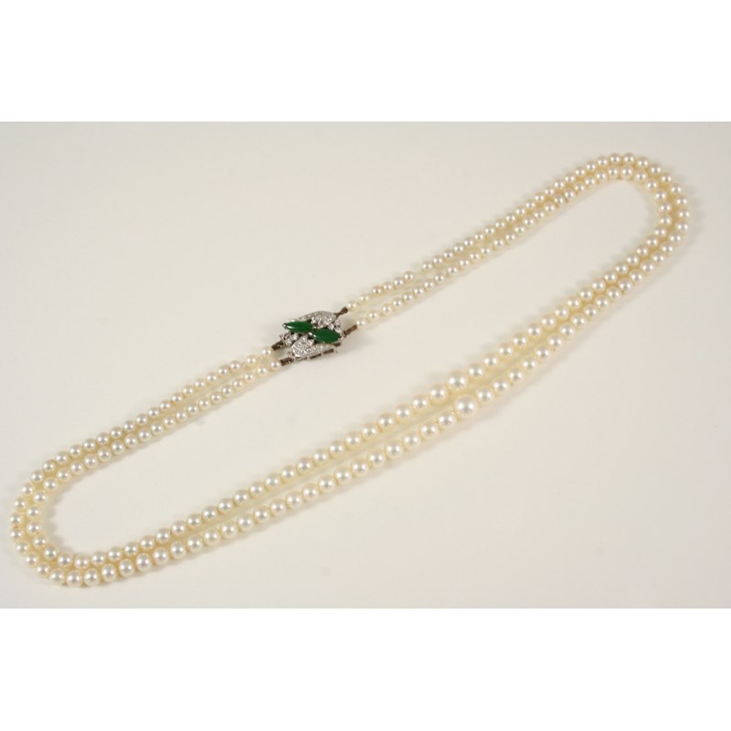 A TWO ROW GRADUATED CULTURED PEARL NECKLACE
