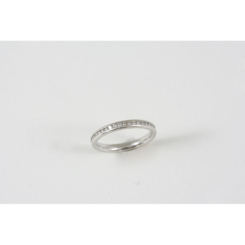 A DIAMOND FULL CIRCLE ETERNITY RING set with circular-cut diamonds in platinum. Size I.