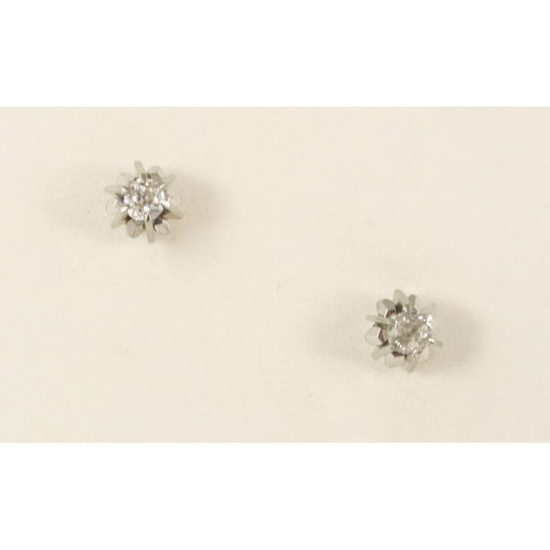 A PAIR OF DIAMOND STUD EARRINGS each set with a circular-cut diamond.