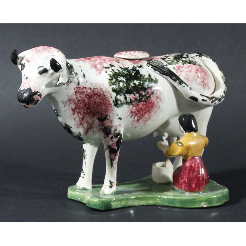 YORKSHIRE PEARLWARE COW CREAMER AND COVER,
