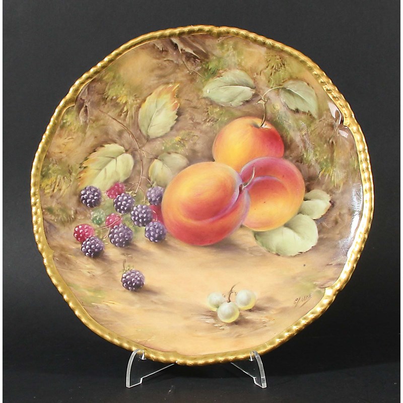 ROYAL WORCESTER CABINET PLATE, signed P Lowe, painted with peaches and blackberries, black printed marks, diameter 26cm