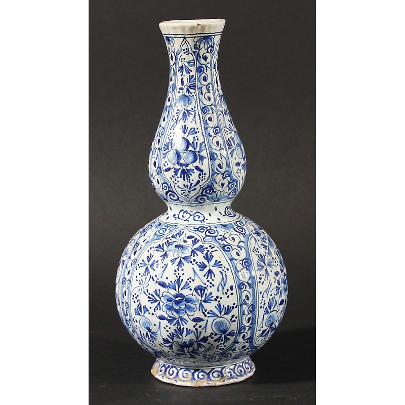 DUTCH DELFT DOUBLE GOURD VASE, 19th century, the slightly reeded body blue painted with ogee floral panels, painted marks, height 20.5cm