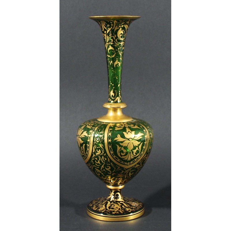 BOHEMIAN GREEN AND GILT VASE,