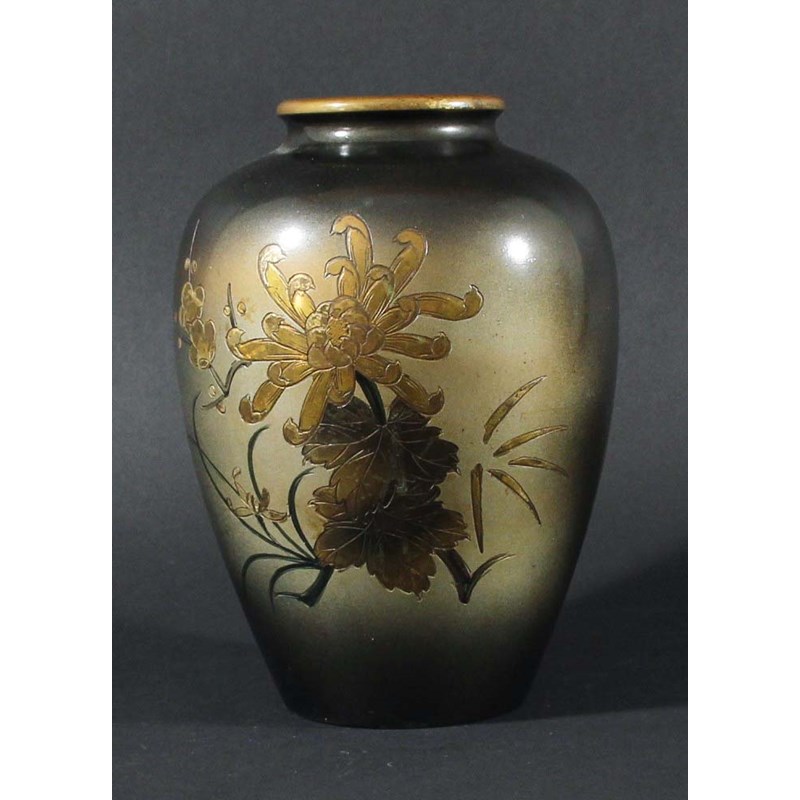 JAPANESE BRONZE AND LACQUERED VASE, 20th century, with burnished chrysanthemum and prunus decoration, two character signature, height 18cm