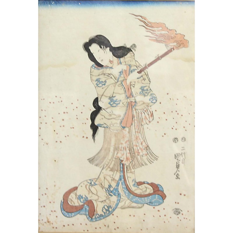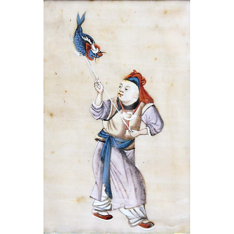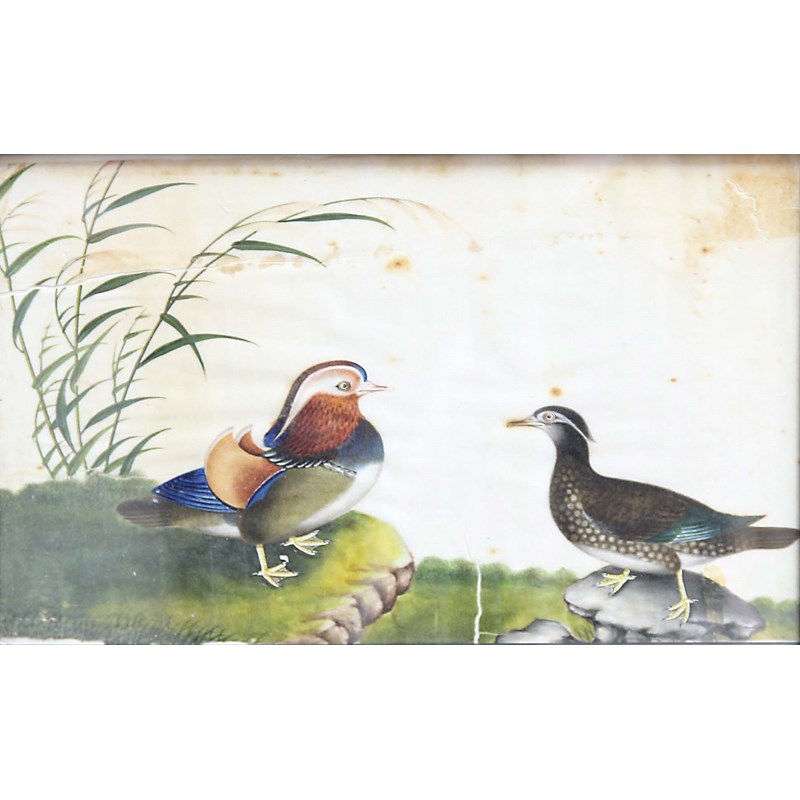 TWO CHINESE RICE PAPER PAINTINGS, of two ducks and a figure; together with a Japanese woodblock print of a figure (3)