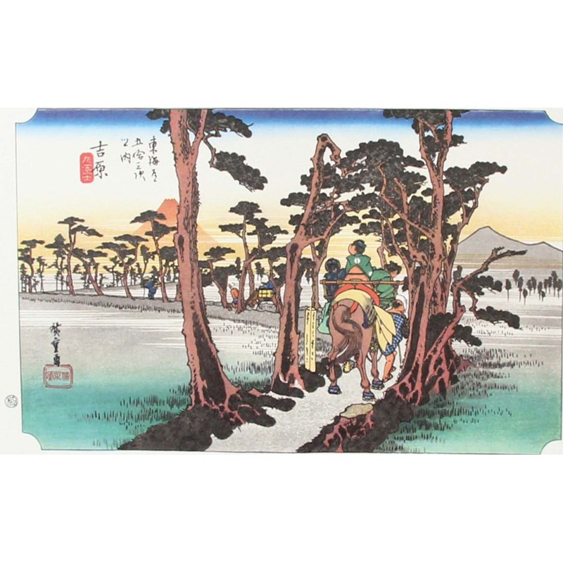 Fifty Three Stations of the Tokaido Road, a set of Japanese woodblock prints, in a presentation case, each image 14.5cm x 23cm
