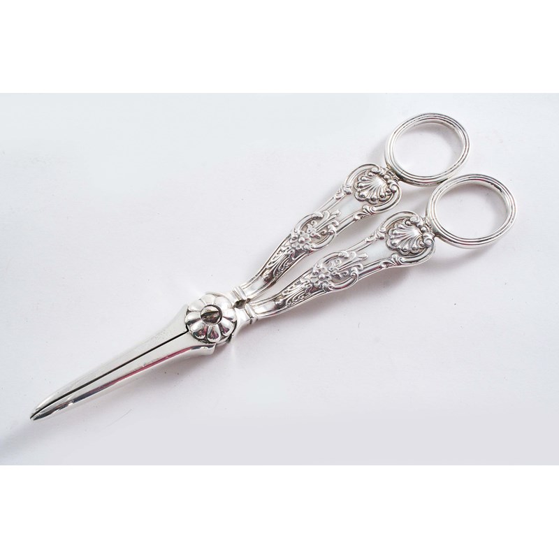 A PAIR OF EARLY VICTORIAN GRAPE SHEARS Queen's pattern, with reeded ring terminals, by C. Reily & G. Storer, London 1838; 6.5" (16.6 cms) long; 3.3 oz