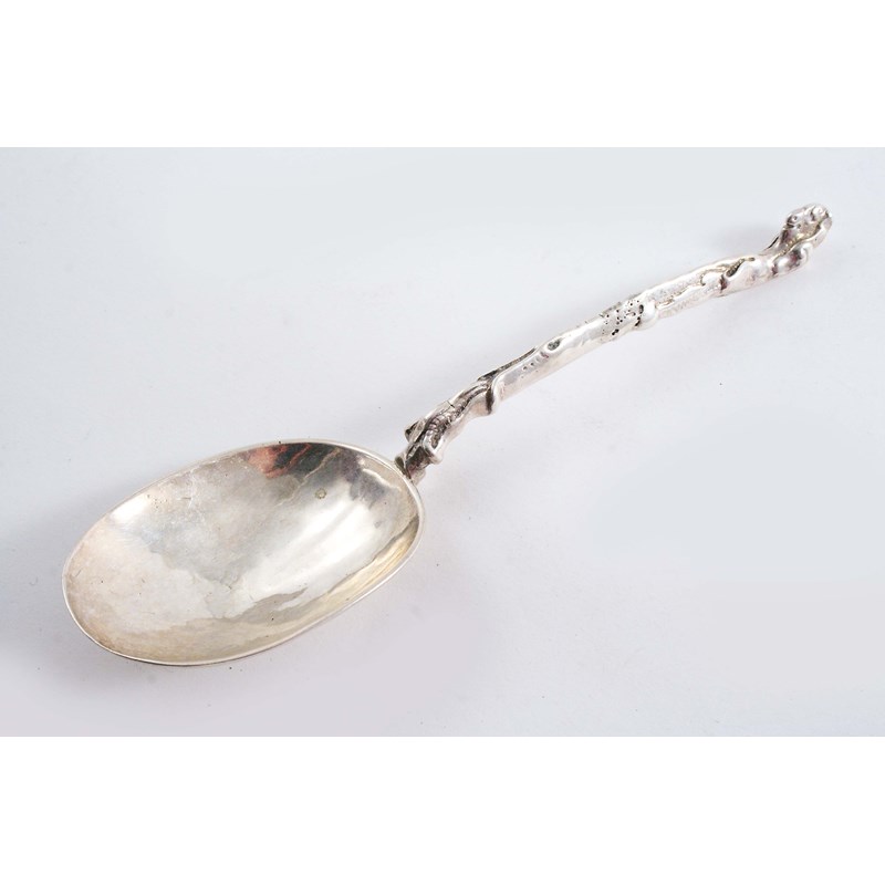 A 17TH CENTURY DUTCH SPOON with a cast stem, initialled "OP" over "RI" on the back of the bowl, marks partially clear, Amsterdam late 17th century; 6.7" (17 cms) long; 1.6 oz