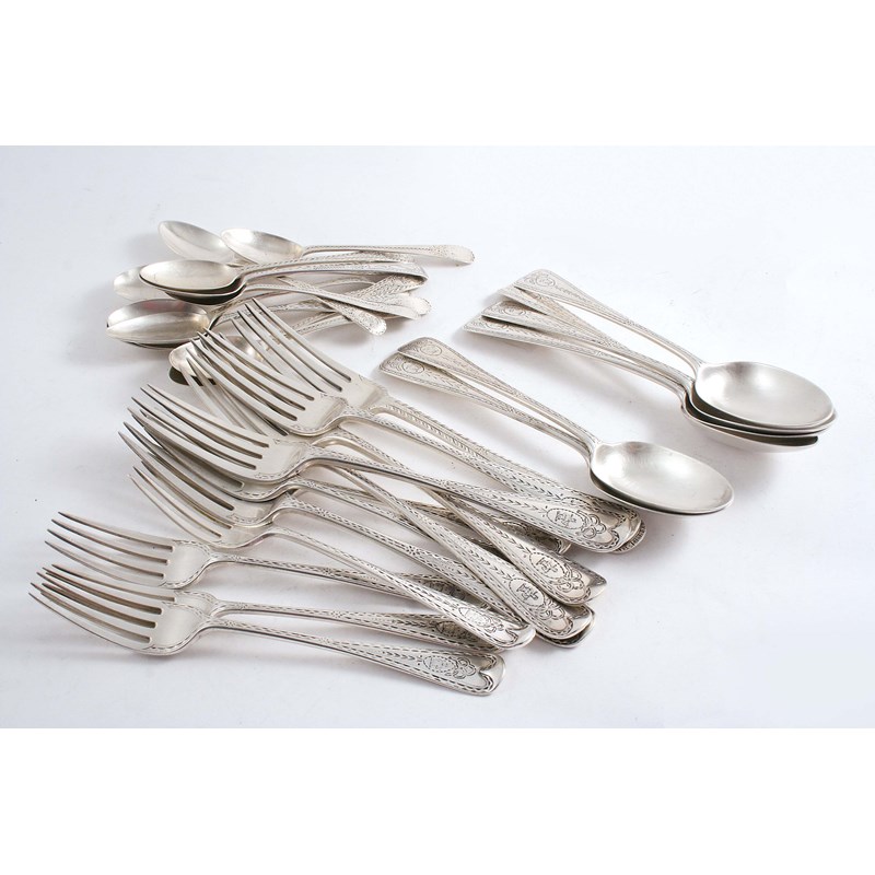 AN ASSORTMENT OF BRIGHT-ENGRAVED FLATWARE: