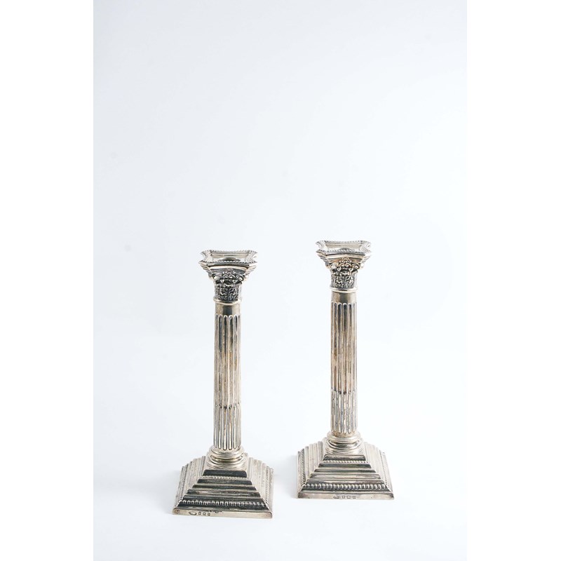A PAIR OF MODERN CORINTHIAN COLUMN CANDLESTICKS