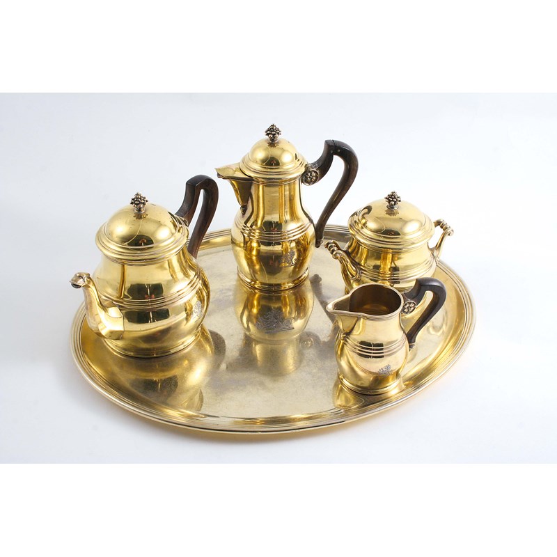 A SMALL EARLY 20TH CENTURY FRENCH SILVERGILT TEA SERVICE